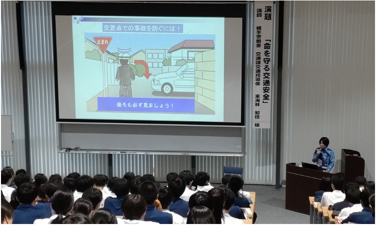 2025年9月17日(水)横手警察署の交通係から東海林さんをお招きし、「命を守る交通安全」と題して2年生を対象にお話をしていただきました。